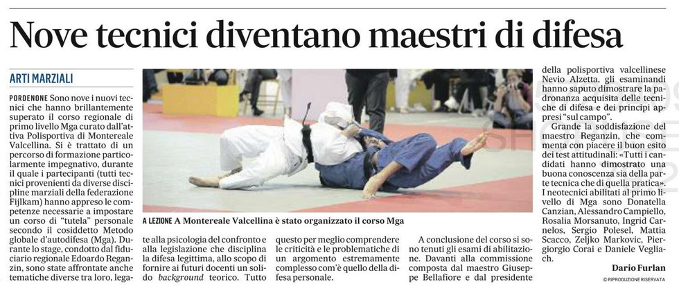 Il Gazzettino, martedì 5 novembre 2019 - Nove tecnici diventano maestri di difesa