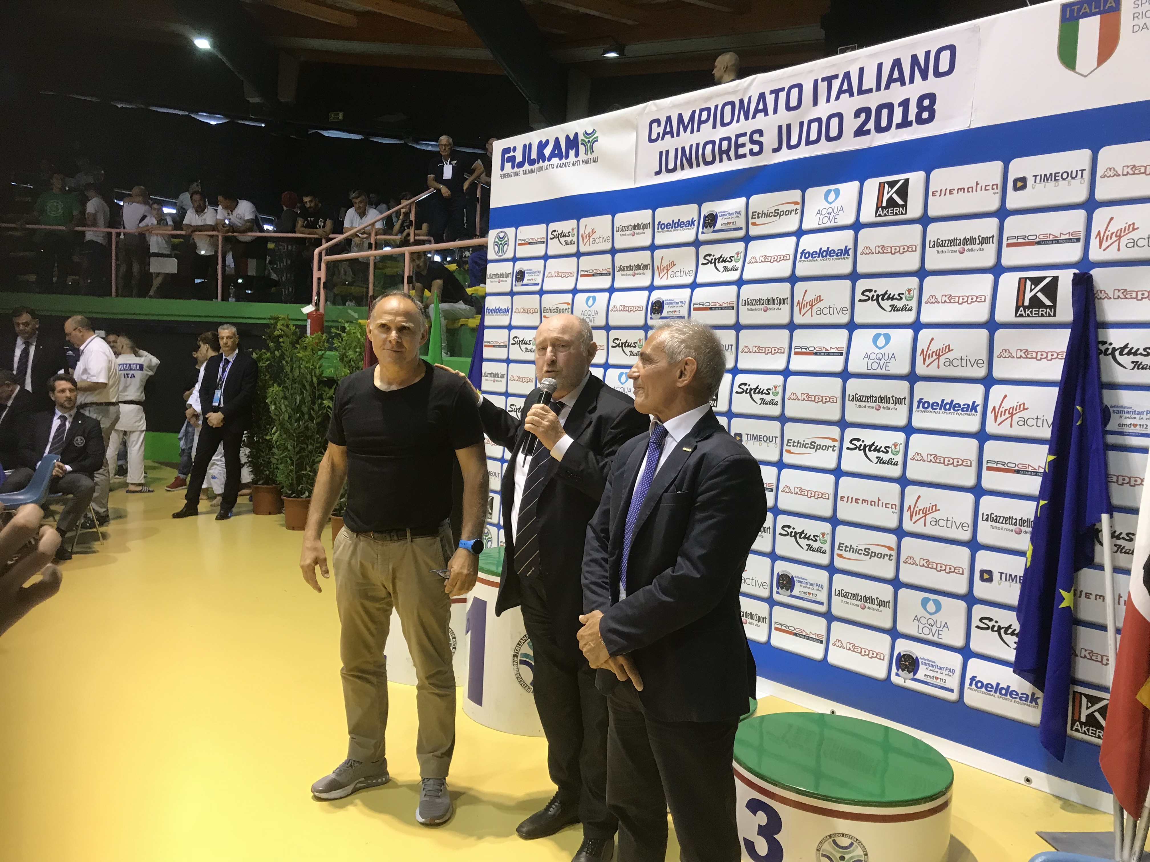 Il Judo Grosseto si è confermata la migliore della classe juniores maschile. Ad affermarlo è stata la classifica per società del campionato italiano di judo, classe U21, che al successo ottenuto nel 2017, ha aggiunto anche quello nel PalaPellicone oggi, con il team toscano nuovamente al primo posto. Una finale tutta ‘Judo Grosseto’ è stata quella dei 55 kg con Mattia Martelloni che, a sua volta, si è confermato al primo posto, superando in quest’occasione il compagno di squadra Antonio Corsale, che l’anno scorso si piazzò al terzo posto. Gli applausi però, sono stati dedicati anche ad altre eccellenze italiane, per un giusto riconoscimento in un ‘fuori programma’ dedicato a Roberta Chyurlia, miglior arbitro donna 2017 per l’European Judo Union, Felice Mariani ed Ezio Gamba, due grandissimi campioni del passato e, su piani diversi, protagonisti assoluti della scena di oggi. Luigi Nasti, oggi vicepresidente judo, è stato lo speaker d’eccezione e, con Felice ed Ezio, ha condiviso da atleta un percorso ricchissimo di soddisfazioni.