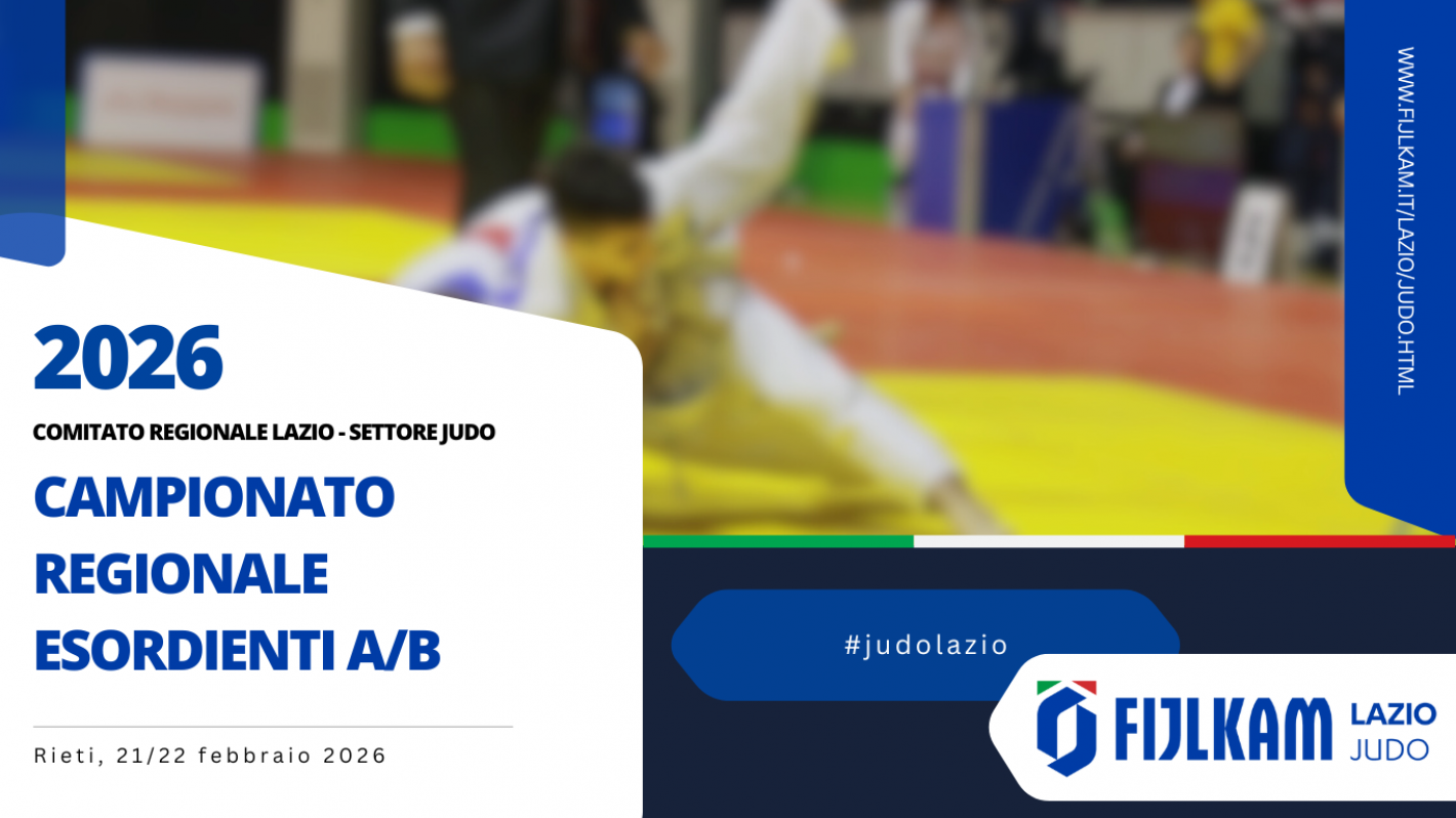 27-Gen-2026 Martedì, 27 Gennaio 2026 Judo CAMPIONATO REGIONALE ESORDIENTI A/B - Rieti 21/22 Febbraio 2026 Leggi
