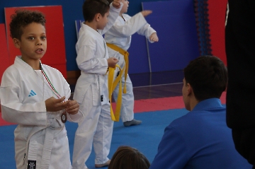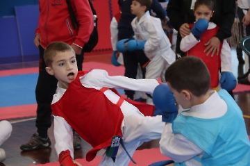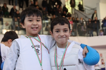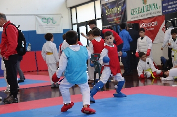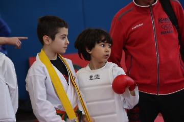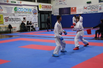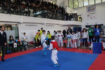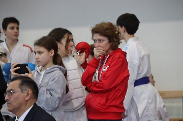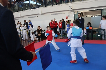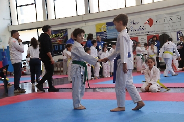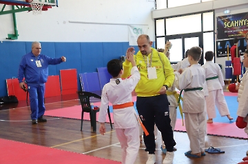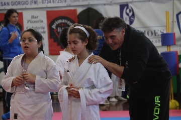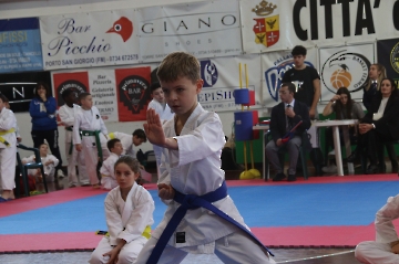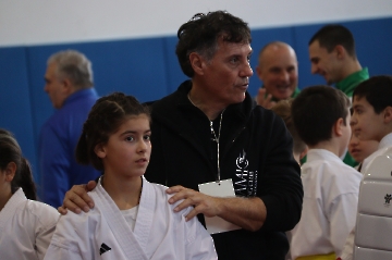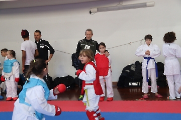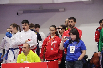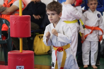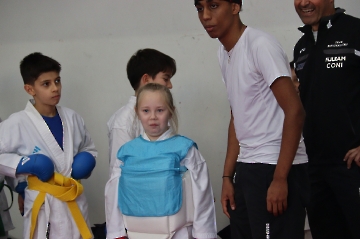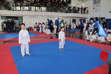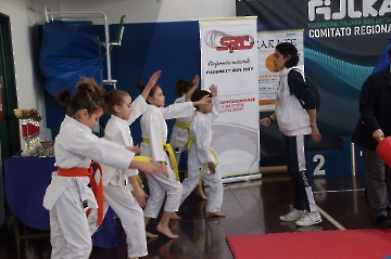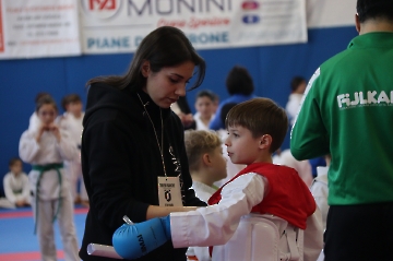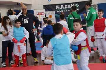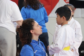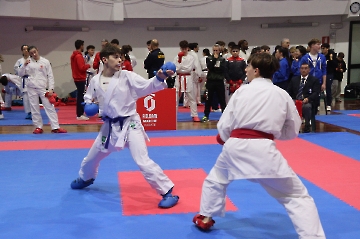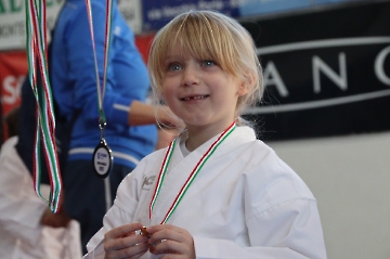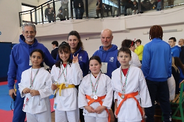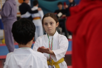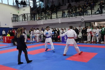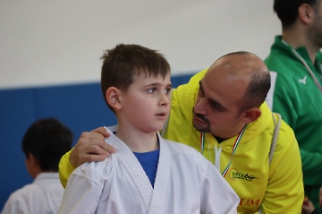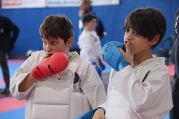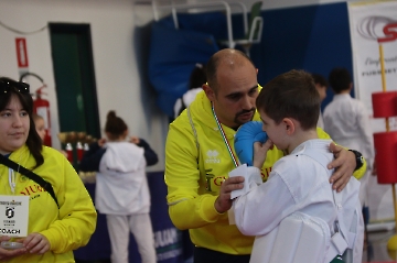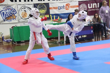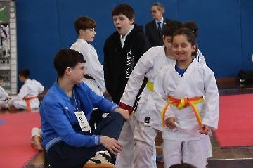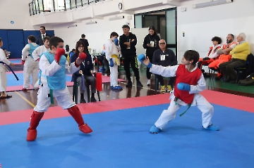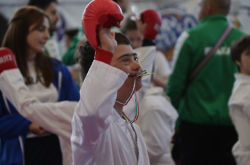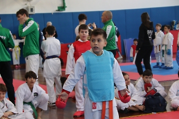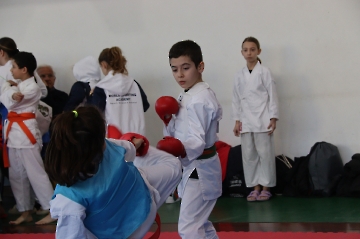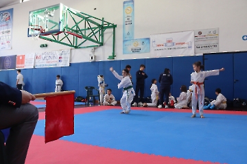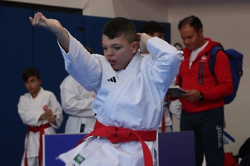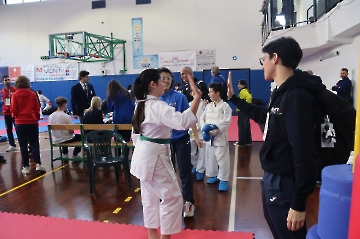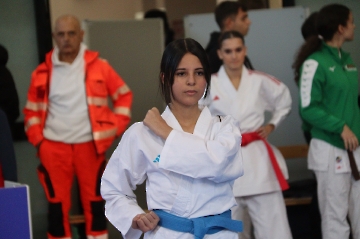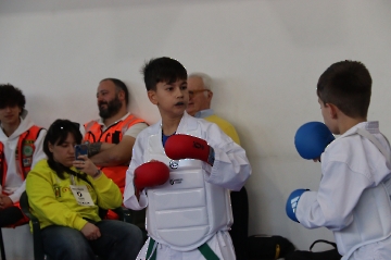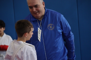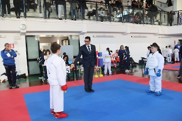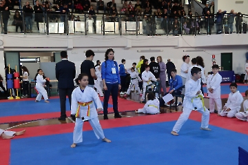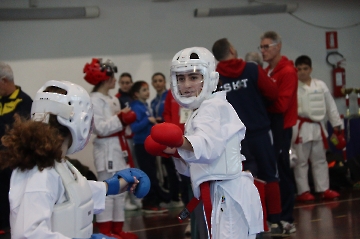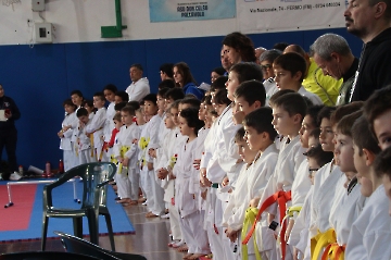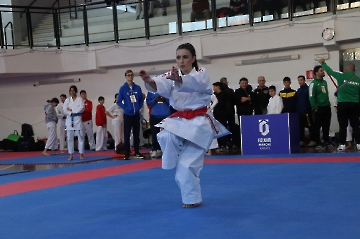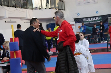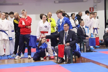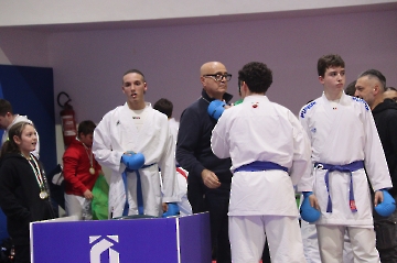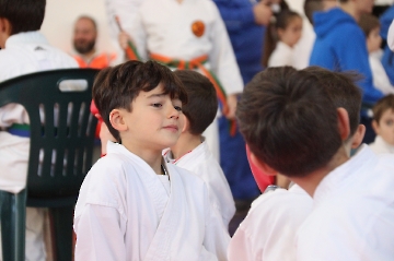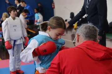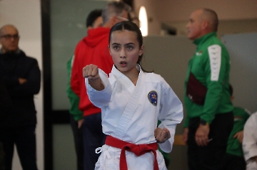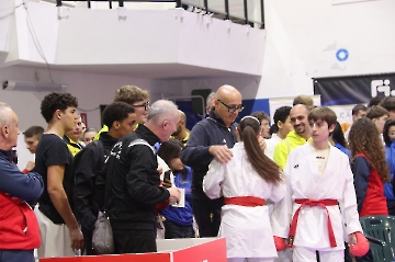 La mattina è stata dedicata al Gran Premio Giovanissimi, riservato alle categorie U6, U10, U12 e U14 cintura bianca. L’attività, di carattere promozionale, è stata concepita per promuovere la disciplina del karate sportivo attraverso giochi propedeutici sia al kumite sia al kata. L’obiettivo è introdurre con gradualità il passaggio dal gioco-sport all’agonismo giovanile, prevenendo traumi e abbandoni precoci. La partecipazione è stata straordinaria: quasi 300 giovani atleti hanno condiviso i 6 tatami di gara.