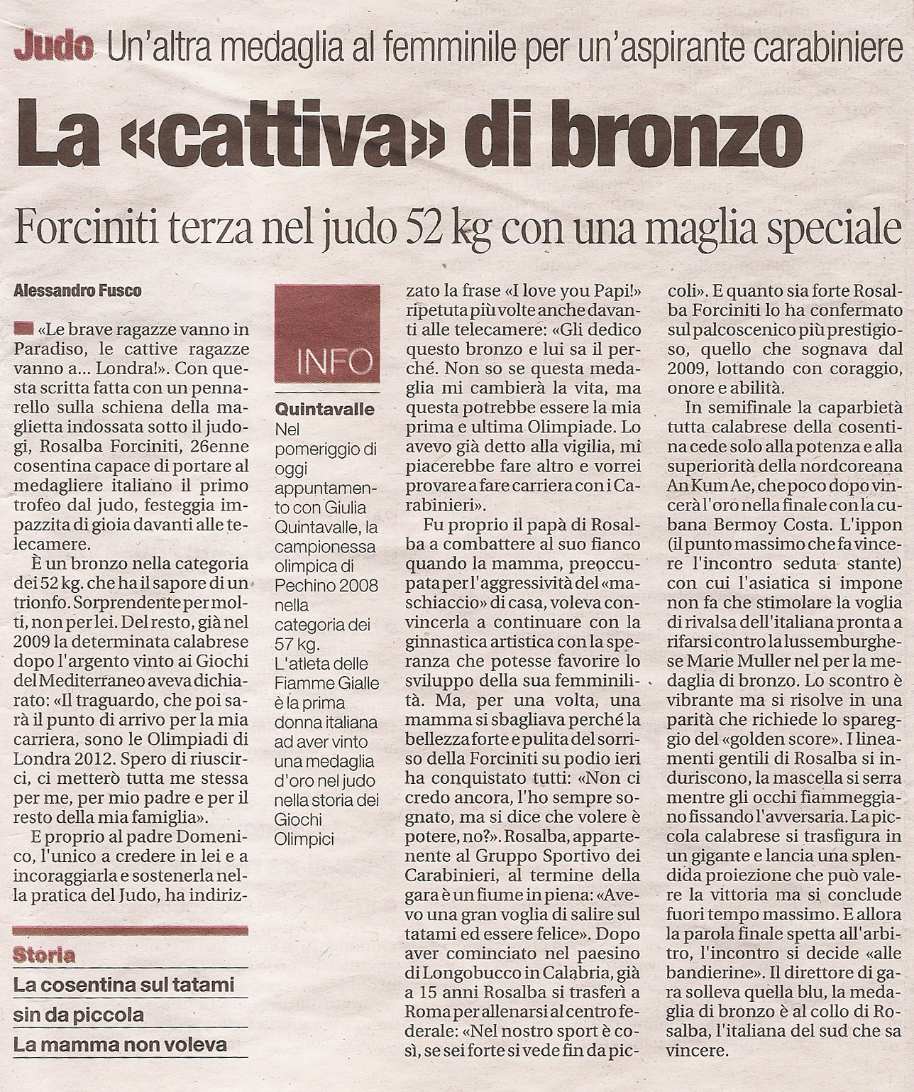Gazzetta dello Sport. Forciniti - 30-7-2012
