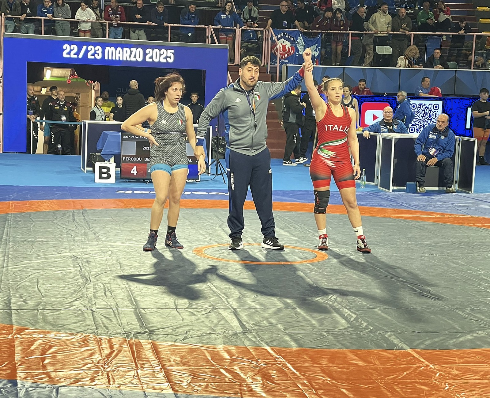 Denise allenata del padre Mario Piroddu conquista un’importante medaglia d’argento nei Kg. 59 di Lotta Femminile per la scuderia della Polisportiva Athlon Sassari ASD; Denise vince quattro incontri, nel combattimento per la finale posto cede contro un’avversaria molto più esperta l’Italo-Ungherese Sophie Ritter, due volte campionessa di Europa anno 2022 e 2023.