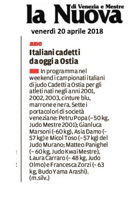 D NUOVA VENEZIA judo martedì 24 aprile 2018
