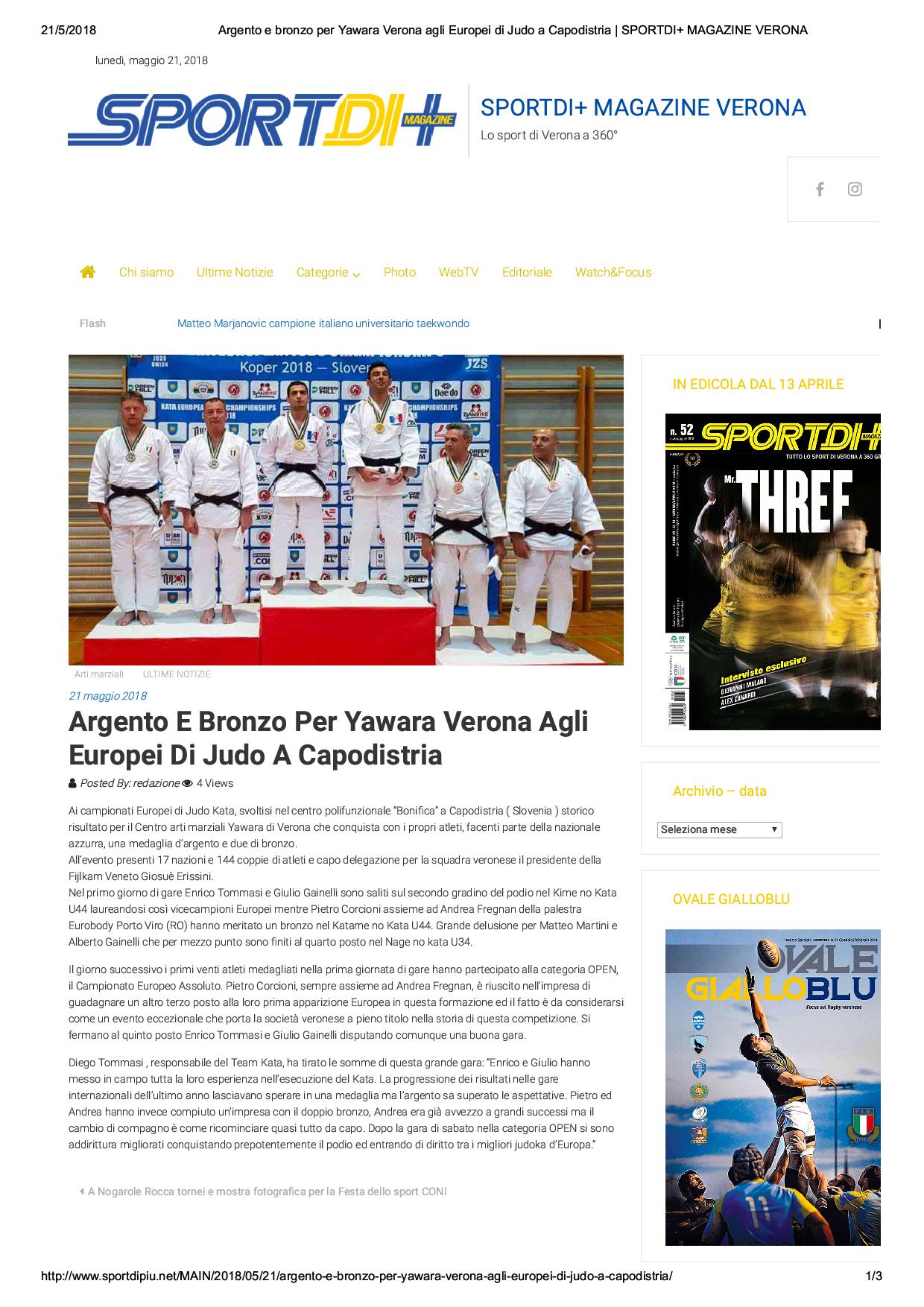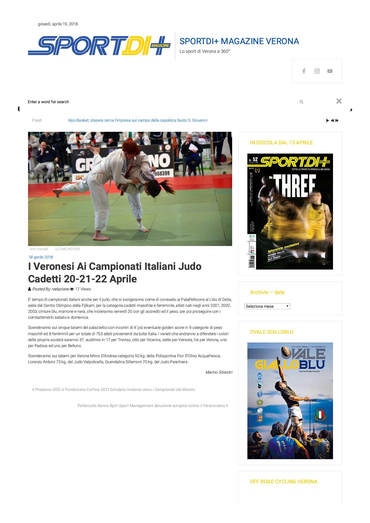 SPORTDI+ MAGAZINE VERONA 19 APRILE 2018